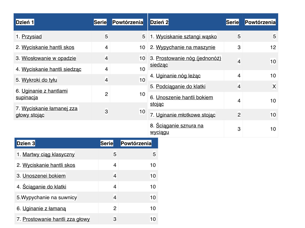 Mój obecny plan treningowy wygląda następująco: